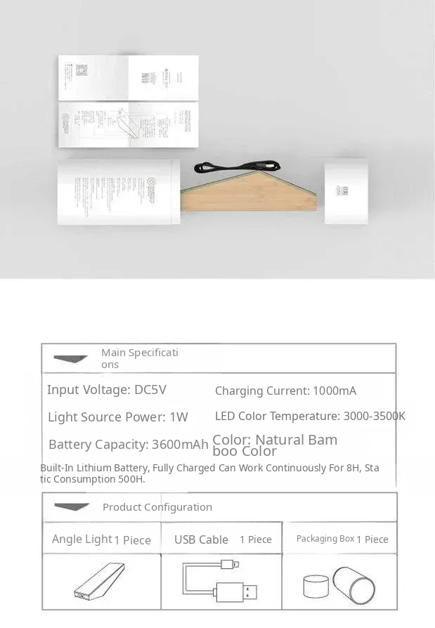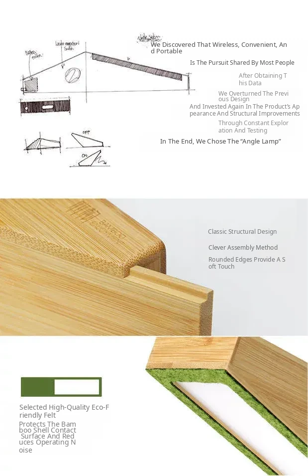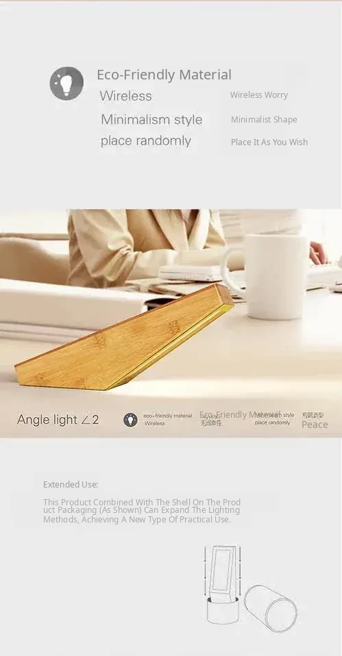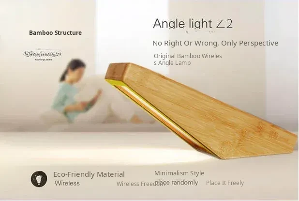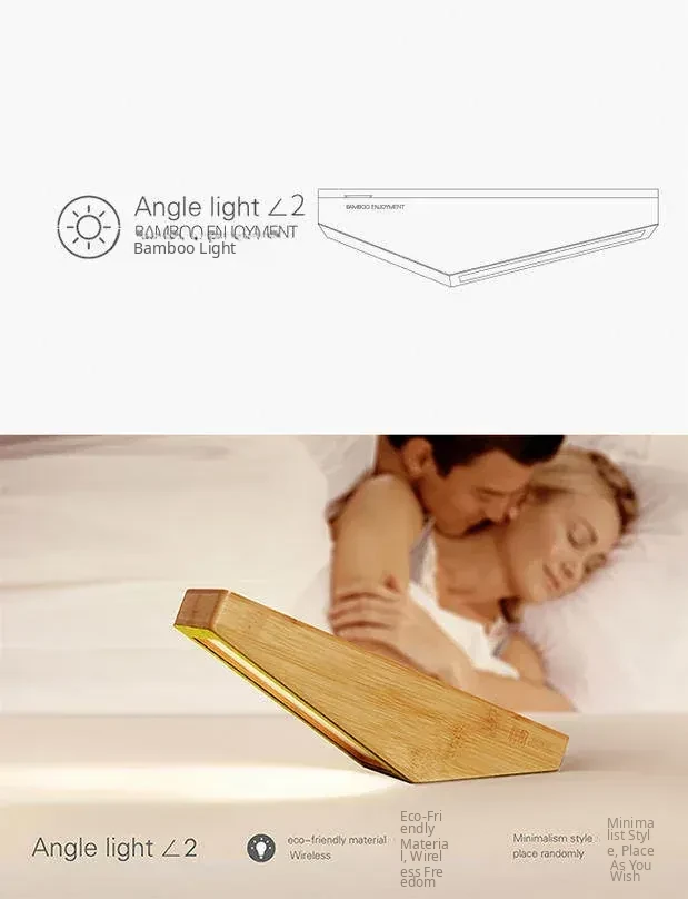 Bamboo Delight: LED Bedside Angle Lamp - Wireless Sensor Night Light for Bedroom, Made from Natural Bamboo
